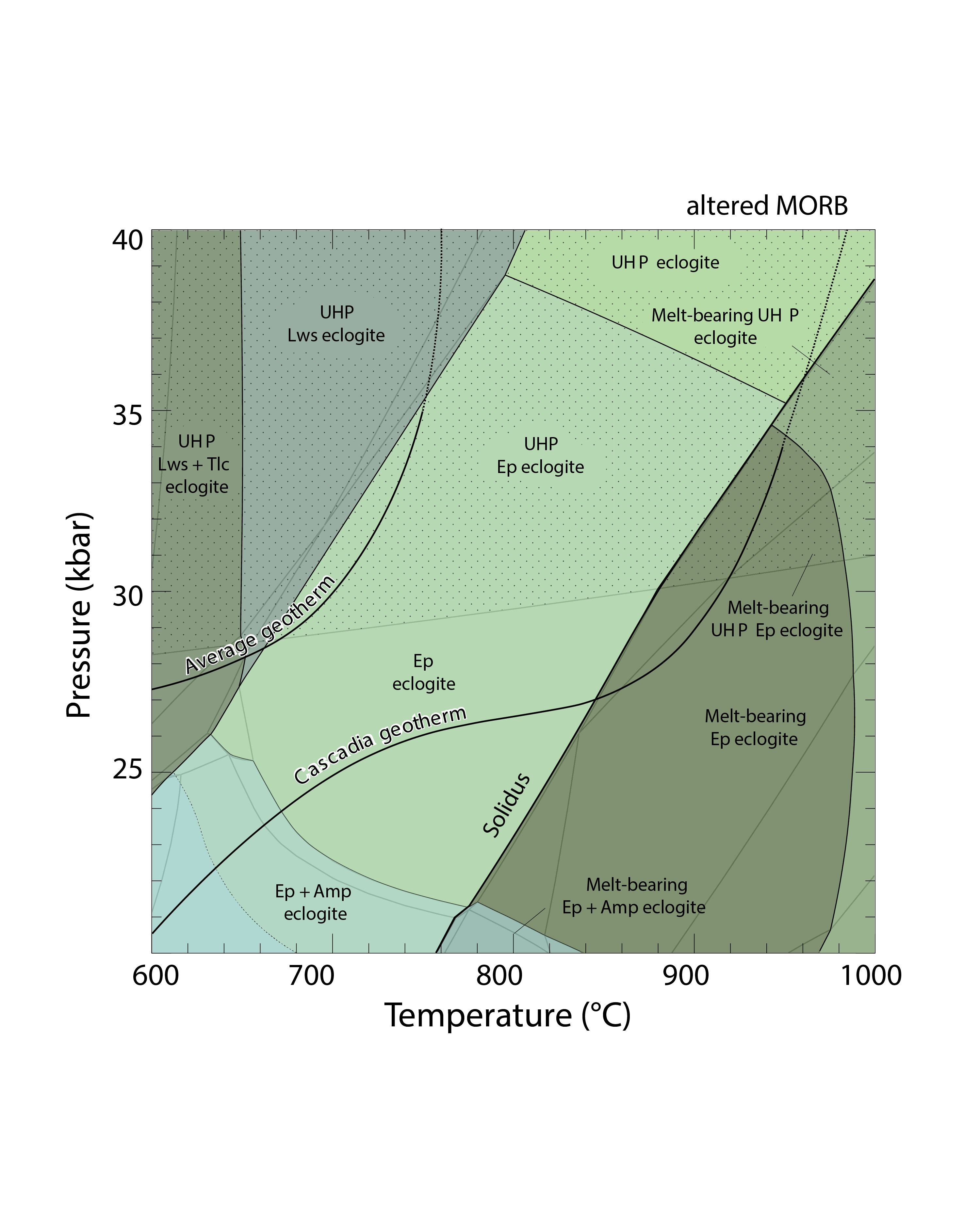 Adakite is a rare class of magma characterized by fractionate rare earth element patterns and high silica and sodium content features attributed to equilibrium with a garnet-bearing residue. While these characteristics are consistent with adakites forming through partial melting of subducted oceanic crust, debate exists regarding the likelihood of this occurring in modern-day arc environments. Together, my colleagues Richard Palin (now at Oxford), David Hernández-Uribe (now at University of Illinois Chicago), and I explored the probability of subducted crusts melting through phase equilibrium modeling. We showed that subducted crust should only melt in the hottest subduction zones. Hydrothermally altered basalt, rather than pristine MORB, also represents a more fertile source material for partial melting in arc settings.